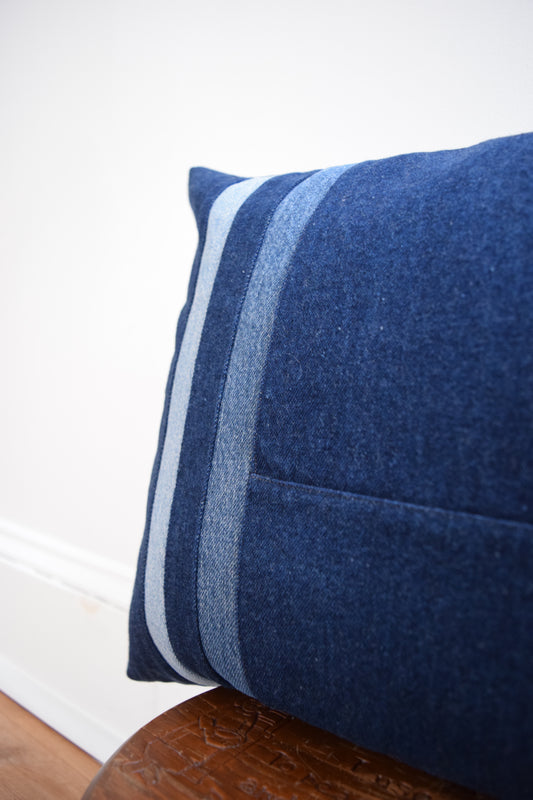 Striped Denim Pillow 14'' x 22''
