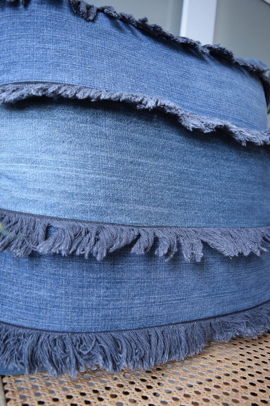 Denim Fringe Pillow Cover 20'' x 20''