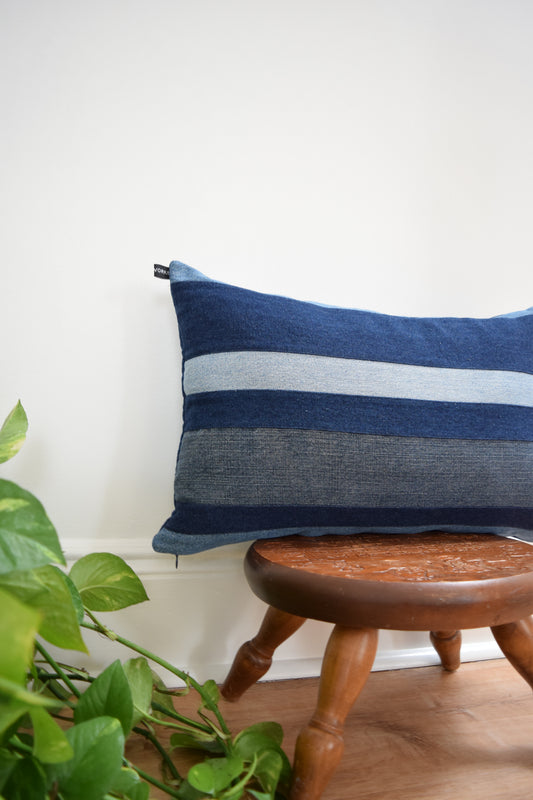 striped denim pillow 14'' x 22''