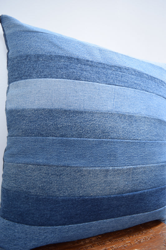 Striped denim pillow cover 20'' x 20''