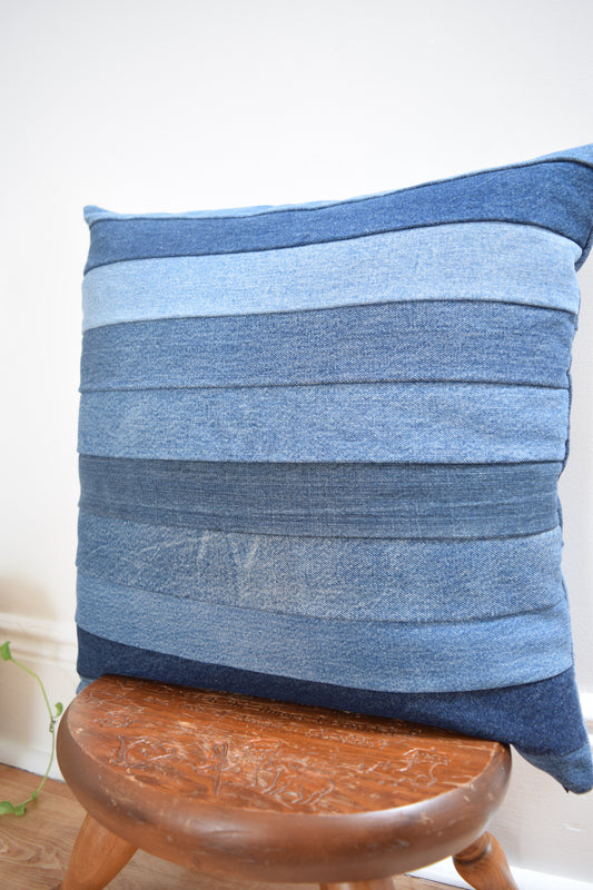 striped denim pillow cover