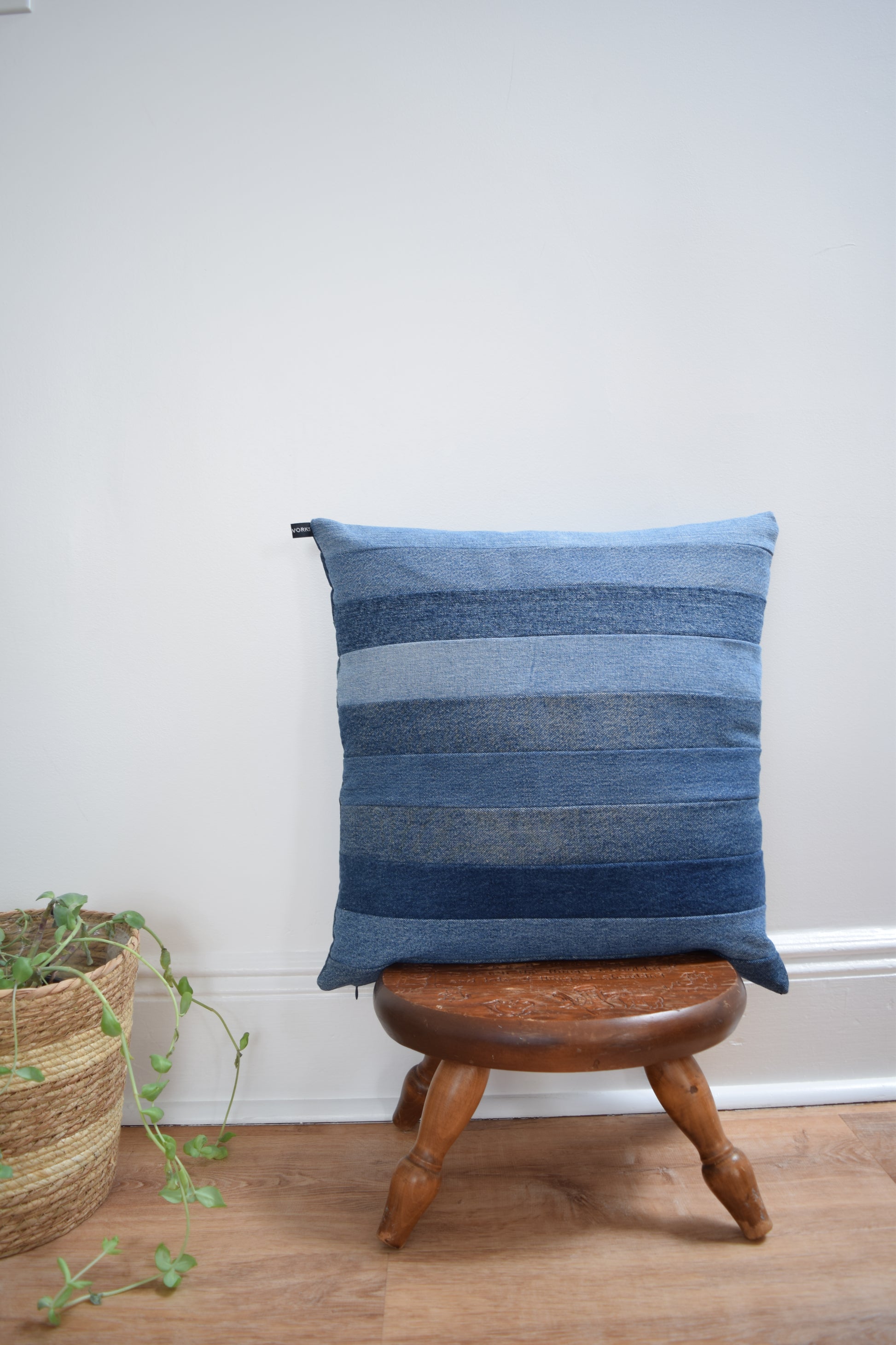 Striped denim pillow cover 20'' x 20''